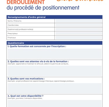 L’existence d’un ou de plusieurs documents décrivant le projet professionnel du candidat, ses motivations, ses acquis éventuels et son expérience. Ce document peut prendre la forme d’un questionnaire, d’un compte rendu d’entretien (moyen(s) utilisé(s), durée(s) et compétences évaluées) etc.